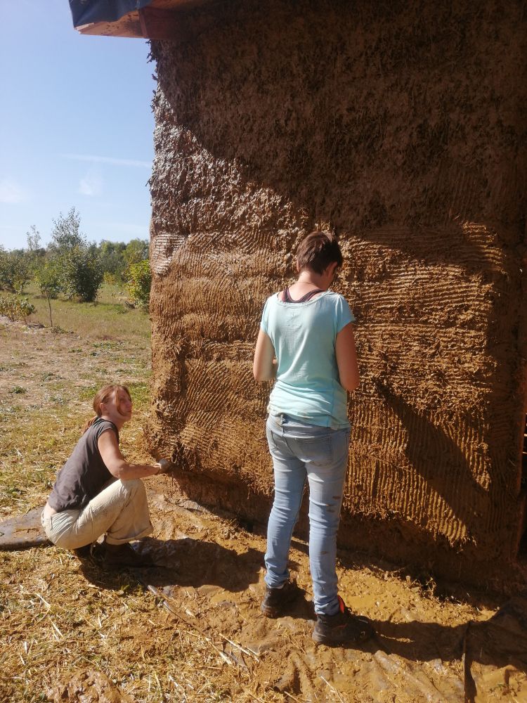 Le chantier consiste à construire de petits habitats légers réversibles en terre/paille, comme l’ensemble des habitats de la ferme à proximité. Nous sommes sur une zone stecale.