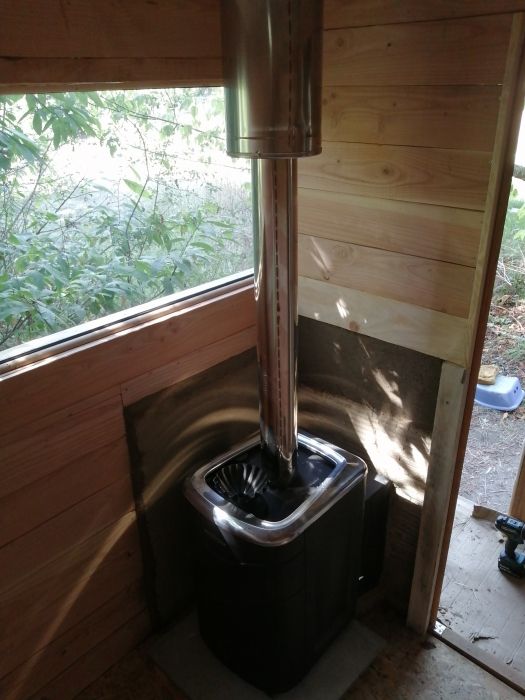 Les fondations seront sur billots de châtaigniers, l'ossature en bois de douglas, l'isolation en laine de bois, et le poêle (russe) sera alimenté en bois mort de ma forêt limitrophe.