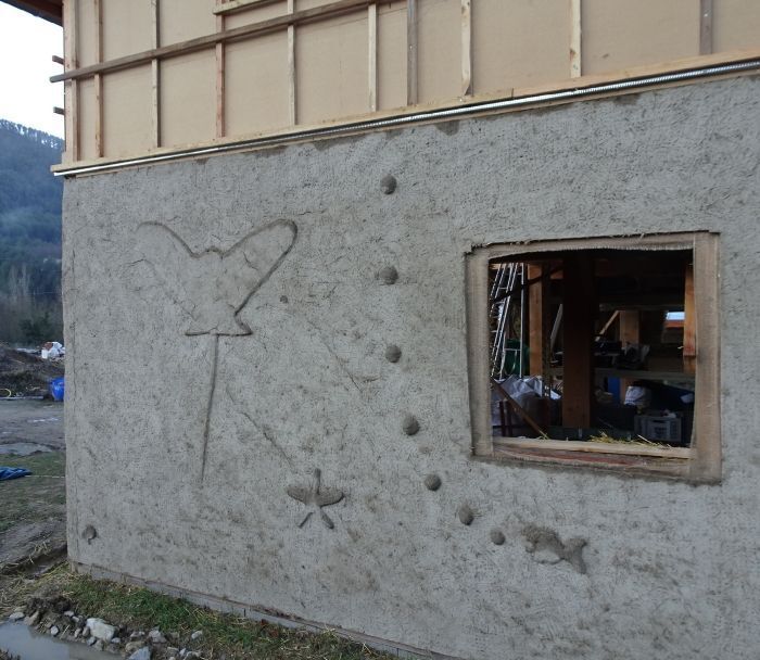 Puis nous appliquons cette enduit sur les murs en bottes de paille.