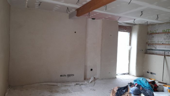 - faire les enduits de corps en terre paille à l’étage (pignon est / mur de refend),