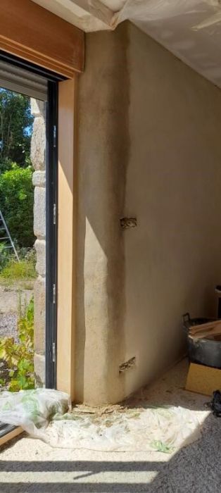 - faire les enduits de finition au rez-de-chaussée et à l’étage / tantôt terre tantôt chaux