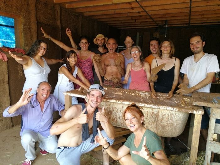 Les enduits terre-pailles continuent !!! Nous attaquons les enduits intérieurs de l'école !!!