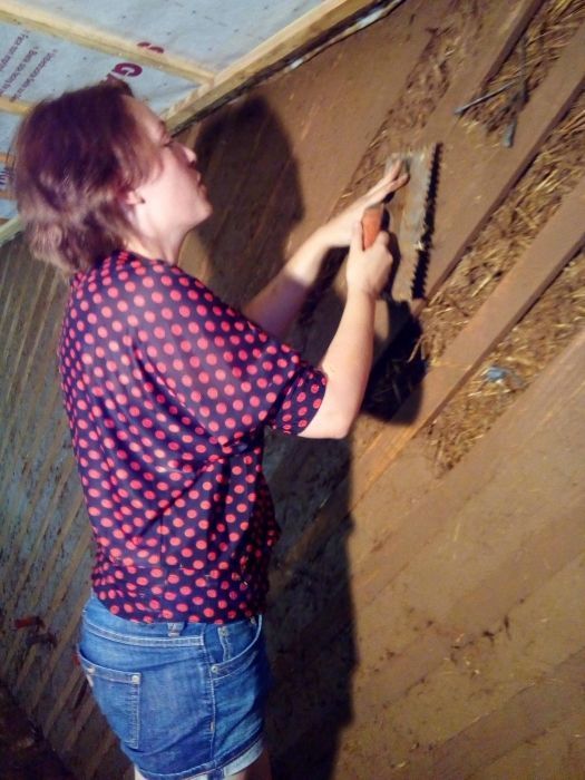Il s'agit de faire les enduits intérieurs pour combler les nus sur les murs de paille.