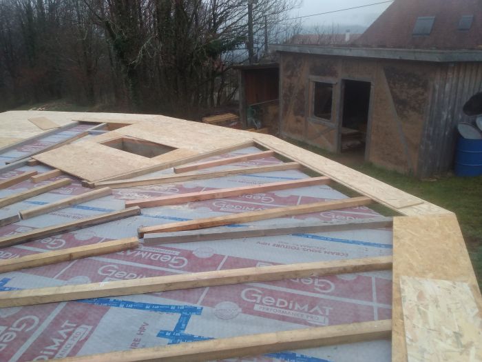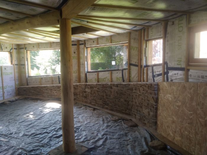Pour cette année 2023, l'objectif est de réaliser l'extension au Sud (serre-salle de bain) et d'aménager l'intérieur (paillourte et extension)