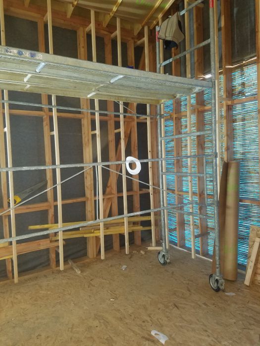 Toujours volontaires, nous entreprenons une maison neuve, ossature bois (réalisée par un professionnel en l'occurrence notre fils (eh oui nos muscles ont un peu faiblis et notre espérance de vie également). Nous avons nous-mêmes participé à des chantiers collaboratifs qui nous ont acquis à cette forme de travaux. Bonne humeur et richesse des rencontres. Apprentissage des techniques. Convivialité. Ouverture