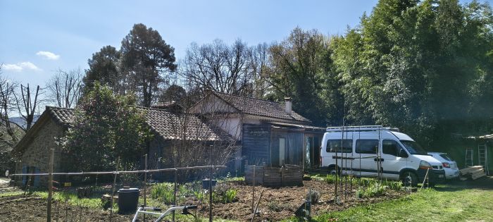 Le lieu est composé de 3 maisons calées entre les terrasses en pierres sèches. Les vignes ont disparu depuis longtemps, laissant place aux arbres et aux bambous géants. Il y a également un potager pour fournir nos repas et une piscine pour se rafraîchir pendant les chaudes journées d’été.