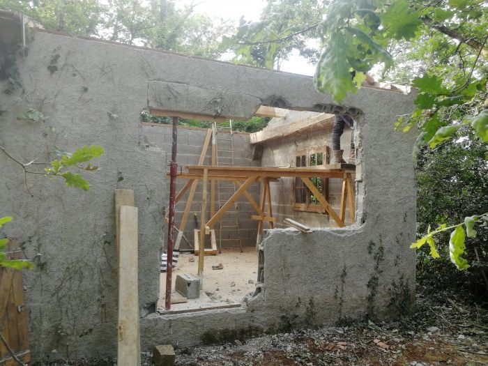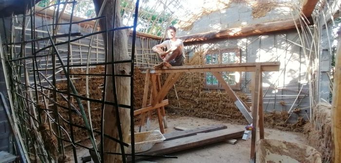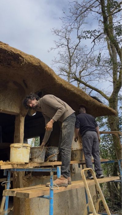 Il y aura donc un peu de déconstruction, du tressage de bambous fendus, et beaucoup de torchis au programme. Le tout dans un cadre boisé, au dessus de la rivière.