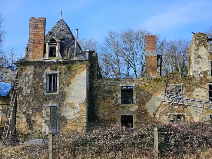 En mai 2022, une entreprise de maçonnerie est intervenue pour remettre en état et sécuriser le gros oeuvre du pavillon. La semaine du 11/07/22 nous a permis de finaliser les planchers du 2ème par la pose du plancher et l'etayage de la charpente. Désormais, nous pouvons accéder sur la toiture par l'extérieur et nous prévoyons donc de compléter l'échafaudage pour permettre le démontage des lucarnes et la dépose de la couverture.