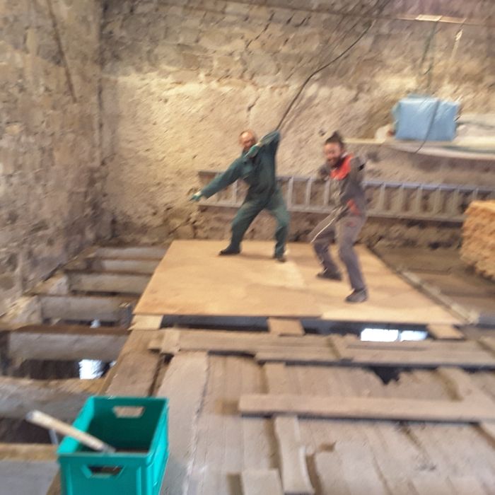 Dans les granges les planchers sont très abîmés nous devons arracher ces vieilles planches.
