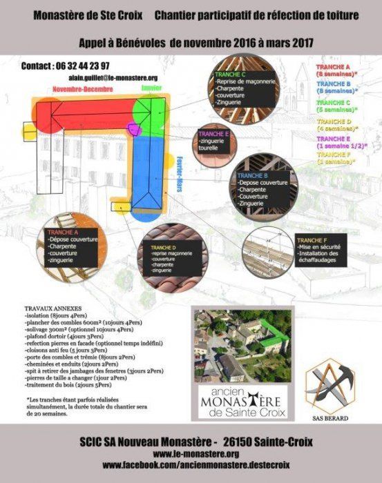 Vous serez encadrés par une équipe de professionnels. divers travaux seront possibles : traitement des bois avec des produits naturels, démontage charpente, évacuation des vieilles tuiles et des gravas sous toiture, taille des fermes, pose des fermes, réalisation de chemin dans les combles, débit de bois, découverte des travaux de zinguerie sur cuivre, ...