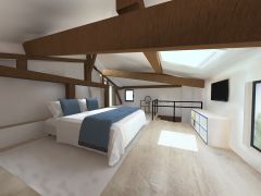L'escalier pour accèder à la chambre à l'étage se trouvait sous un plafond rampant et déservait l'étage avec suelement 1m50 de hauteur sous plafond. L'enjeu était donc de déplacer l'escalier, de gagner en rangement et en espace de circulation.