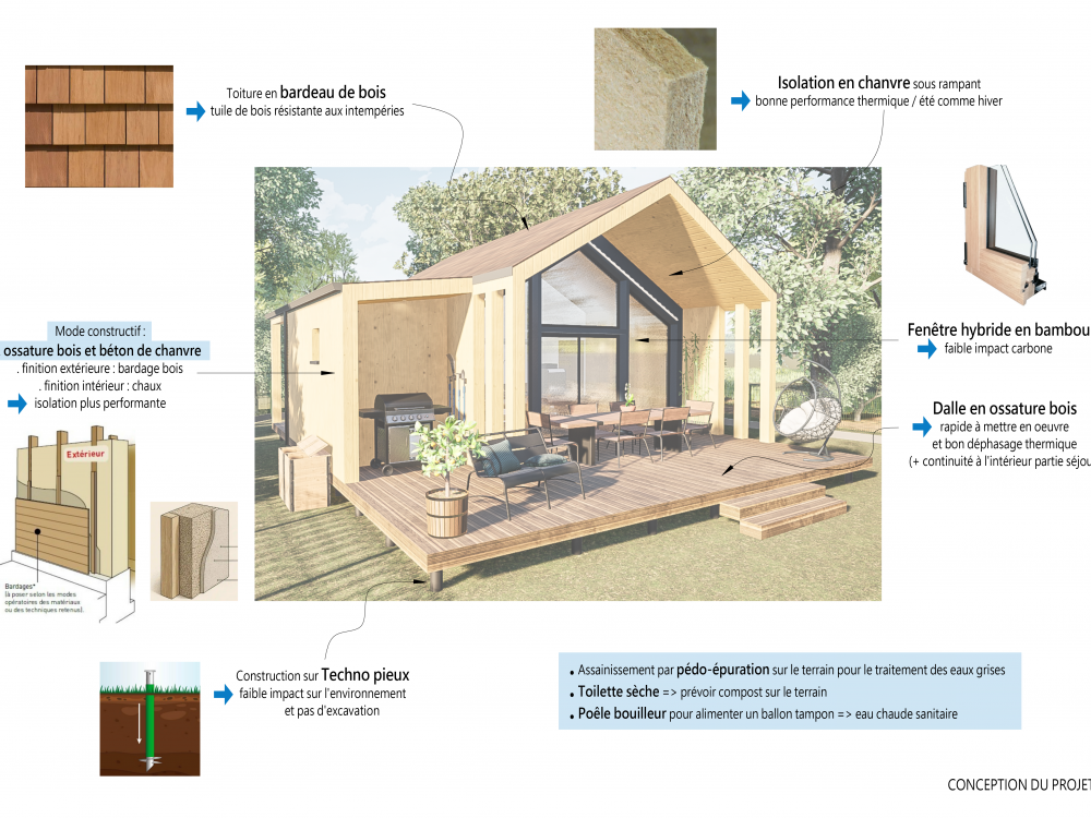 Réalisation d’un projet écologique, intégrant une implantation harmonieuse et respectueuse de l’environnement, ainsi qu’un recours privilégié aux matériaux biosourcés.