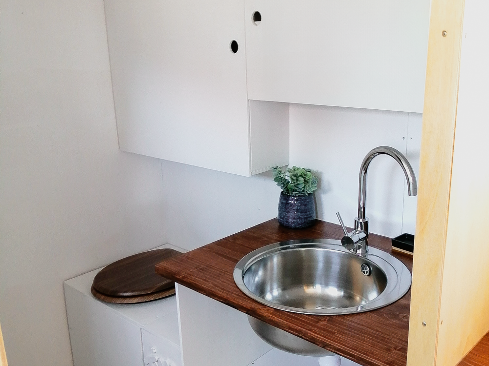1er démonstrateur de Tiny Lab, elle a été conçue pour accueillir une famille de taille moyenne, en étant la plus grande, confortable, écologique et autonome possible. Tiny House bioclimatique, rien n’a été laissé au hasard dans sa conception pour atteindre ces objectifs. Elle est alimentée en énergies renouvelables (bois et solaire) et ses toilettes sèches permettent de produire du fertilisant pour le potager ! Sa construction, dans les locaux de notre partenaire OREAG, a mobilisé une trentaine de personnes, entre insertion et chantier participatif.