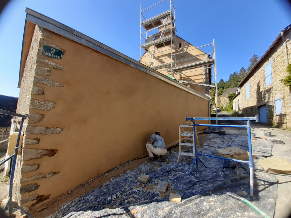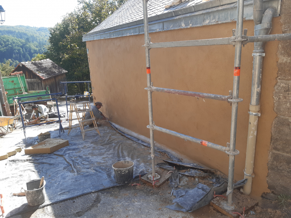 Le pignon en arrière plan est également enduit durant cette session de travaux.