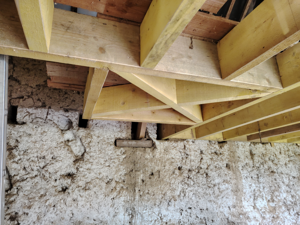 Ici j'ai démonté et refait un solivage dans une dépendance maçonnée en terre.