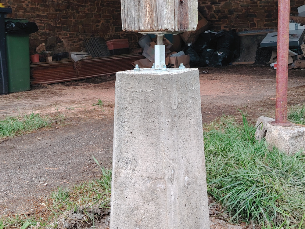 - des poteaux directement enterrés dans le sol et qui commençaient à pourrir