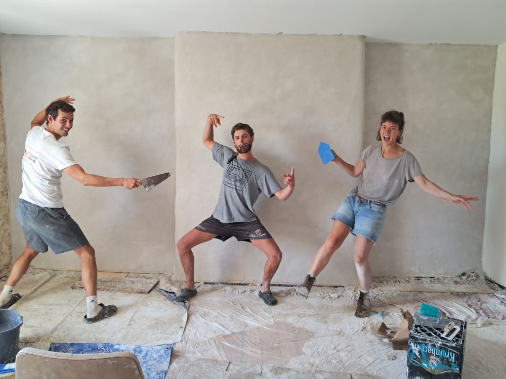Un chantier ou j'ai eu la chance d'accompagner cette joyeuse équipe à réaliser leurs finitions en chaux-sable sur un correcteur thermique chaux-chanvre ,