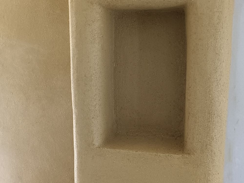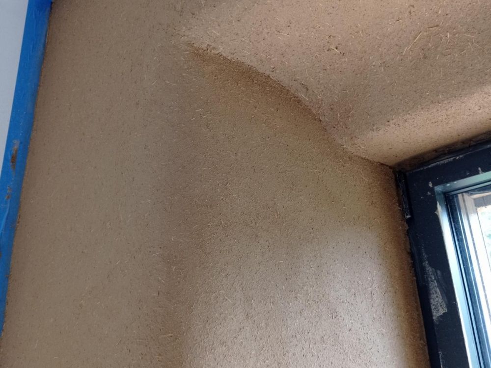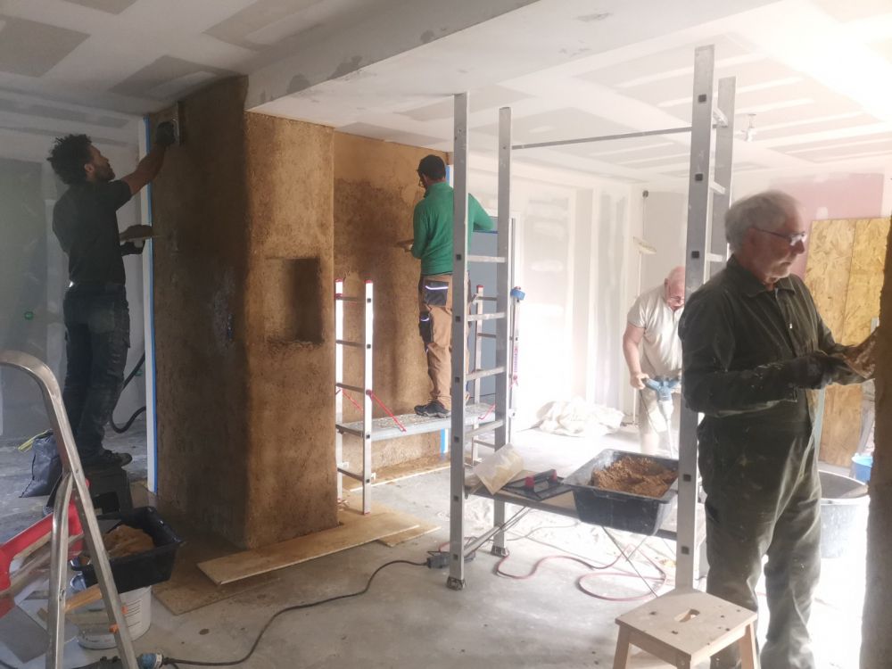 Au préalable, l'accompagnement s'est fait sur deux phases. La 1ère était l'application d'un dégrossi en terre paille/chanvre sur 4/5cm.