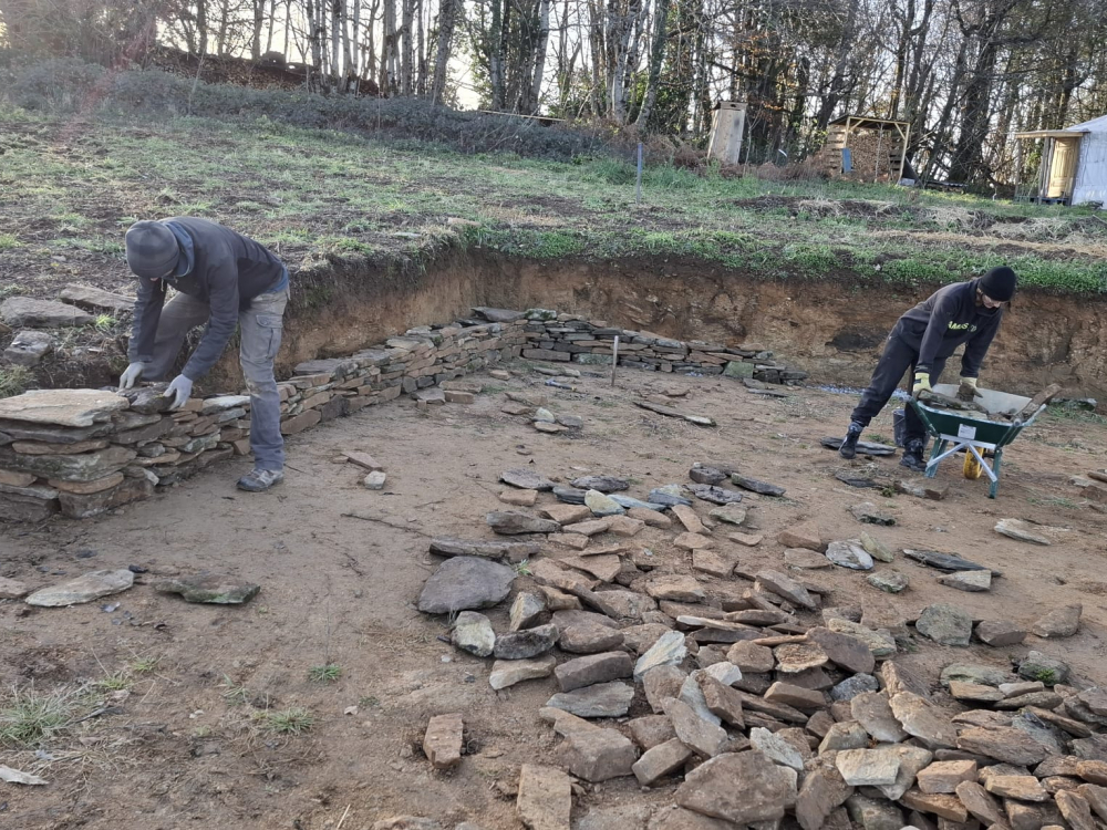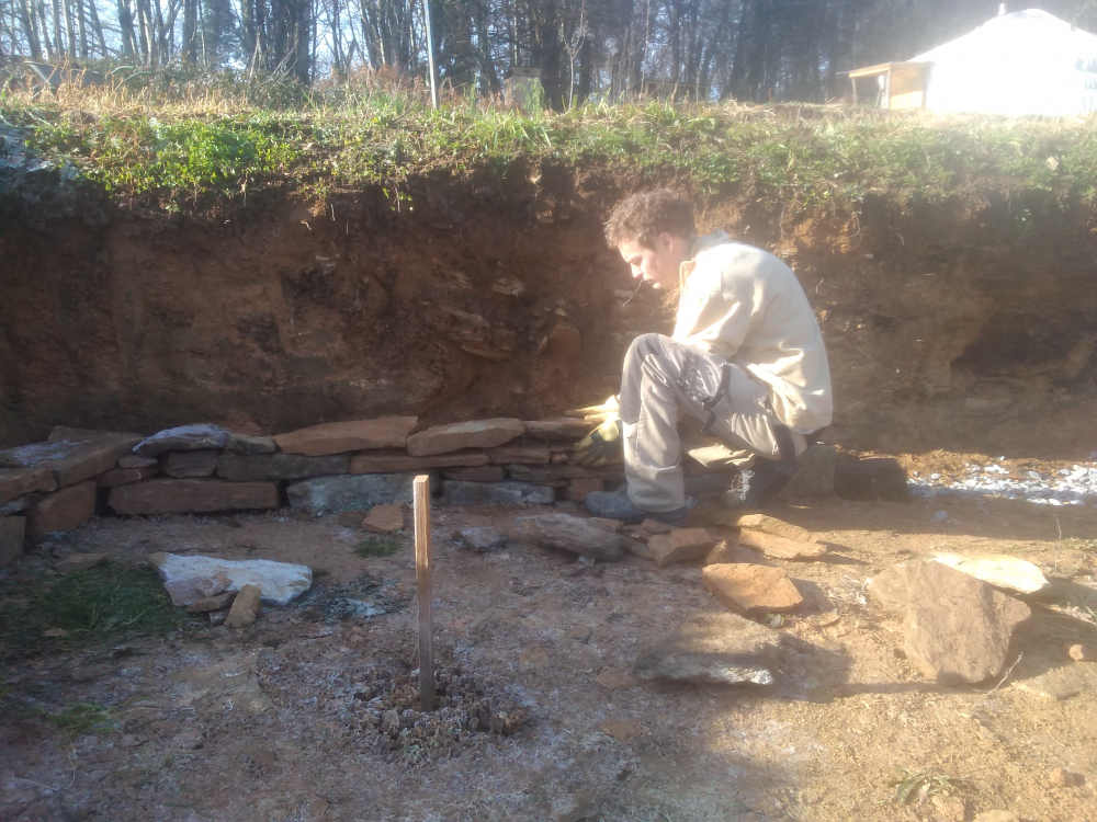 Le but de ce chantier est la création d'un mur de soutènement en pierres sèches, périphérique à la future habitation.
