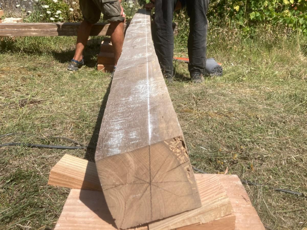 L’occasion de se frotter à l’art du « piquage », le savoir-faire par lequel le charpentier assemble des bois non parfaits.