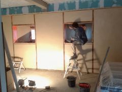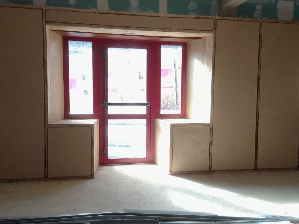 Les ossatures sont ensuite remplies avec un béton de chanvre sur une épaisseur d'environ 33cm, laissant 2.5cm de réservation pour poser la passe de finition.