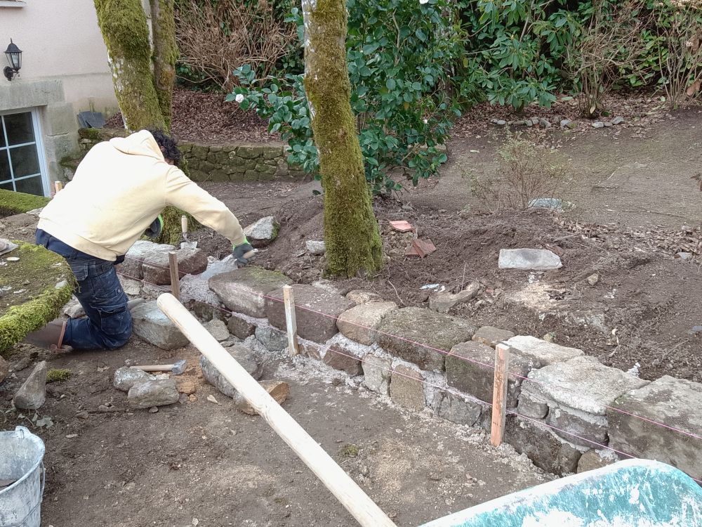 Petit muret pierre réalisé au pied de charmes centenaires.