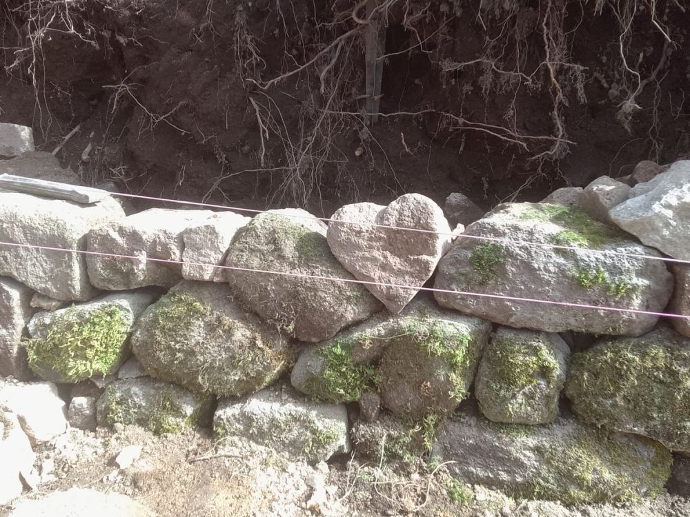 Les pierres des anciens murs sont donc déposées, stockées et la terre triée.