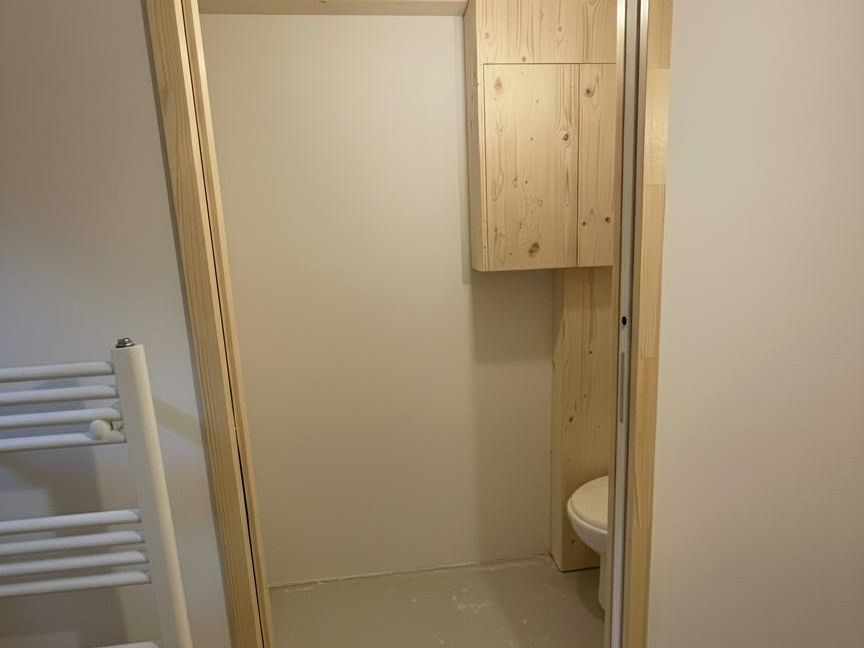 - Réalisation de coffrages en bois massif pour dissimuler les éléments techniques (compteur, tuyauterie).