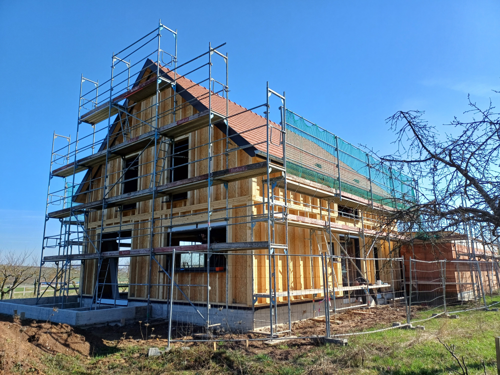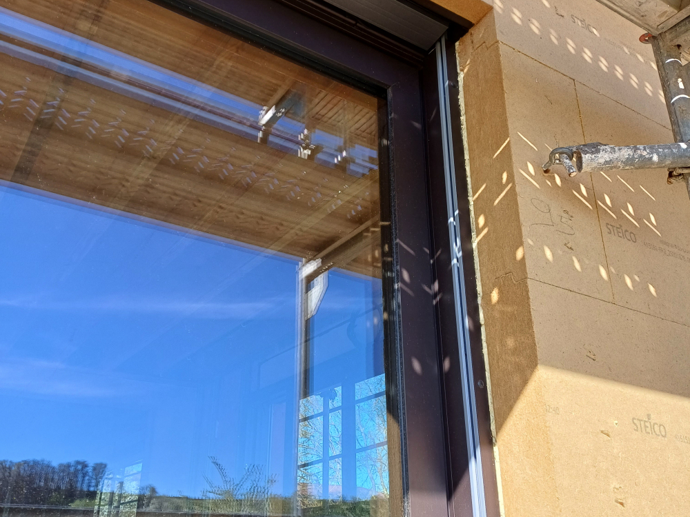 Maison ossature bois / Fibre de bois / laine de bois / triple vitrage / ventilation double flux / brises soleil orientables