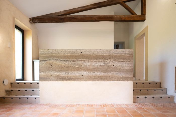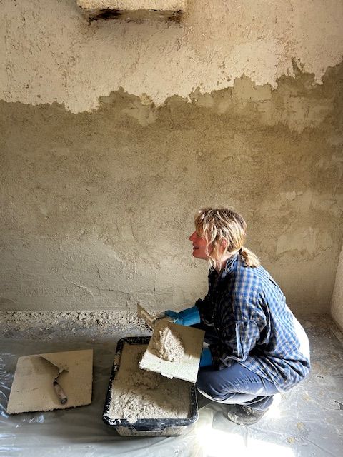 - Enduit de murs intérieurs en terre pour une ambiance naturelle et chaleureuse.