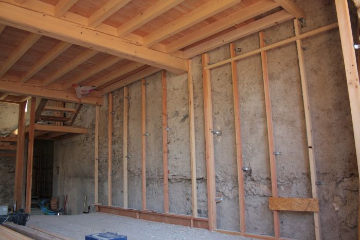 Session de mise en oeuvre de terre paille allégée pour isoler un mur mitoyen en pierres (environ 30m2 au 1er et 2eme étage).