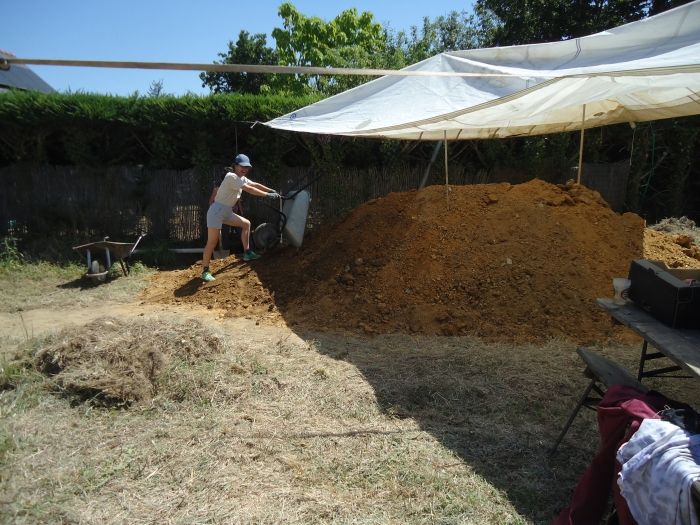 Je suis spécialisée en maçonnerie terre crue ; ce matériau (incroyable) sera beaucoup utilisé sur le chantier : torchis, adobes, bauge, enduits. Et joie, nous utiliserons la terre du terrain !
