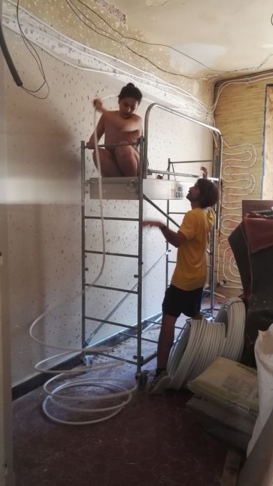 Nous sommes tous les deux architectes donc nous avons quelques connaissances théoriques du bâtiment à partager. Pour la pratique, c'est une autre paire de manche... :) Nous nous sommes formés en chantiers participatifs et en formations courtes.