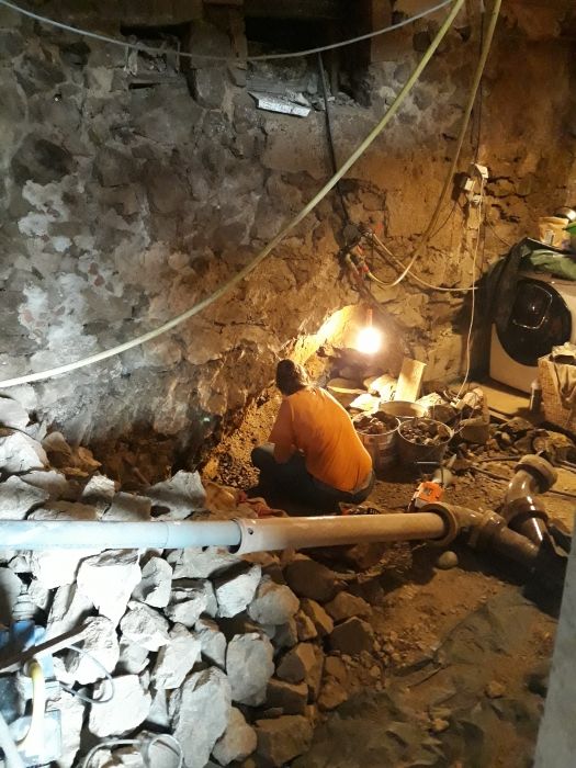 Réalisation de fondations cyclopéennes sous œuvre. (Soit sous le mur existant. EncOre plus foOrt!!)