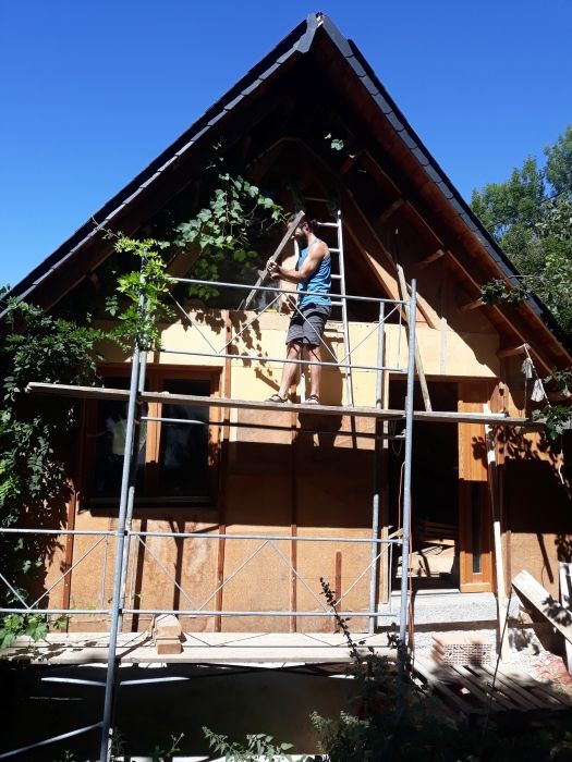 GROS chantier enduits terre prévu cet été avec la terre du coin, le crottin du voisin, etc... nous avons à tamiser la terre(déjà commencé), poser un support pour les enduits (petites lames de bois). Et enduire! Ce sera assez perilleux et physique car si les murs sont à faire mais tous les rampants aussi. Nous serons accompagnés pour cela par une (super) professionnelle !
