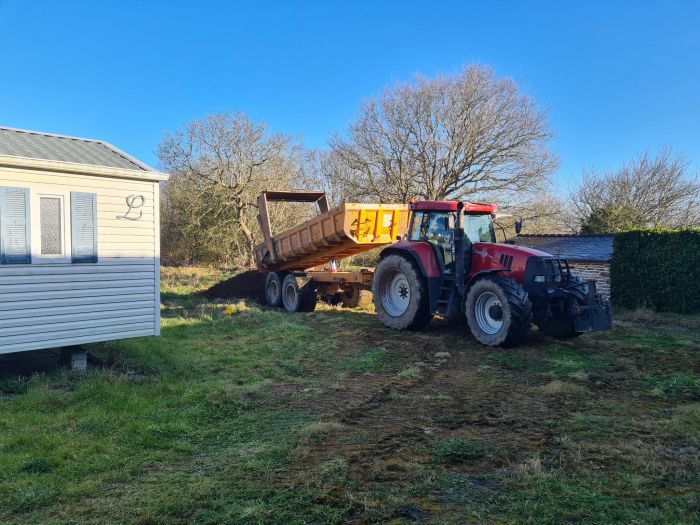 - Remise en état du terrain après passage des terrassiers (enlever cailloux, semer de l'herbe, etc.)