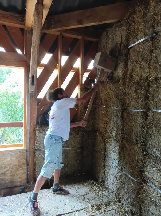 - selon les motivations, nous pourront envisager de prolonger les chantiers participatifs avec la pose des lambris, parquets, bardage en septembre/octobre.