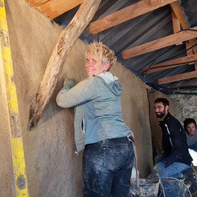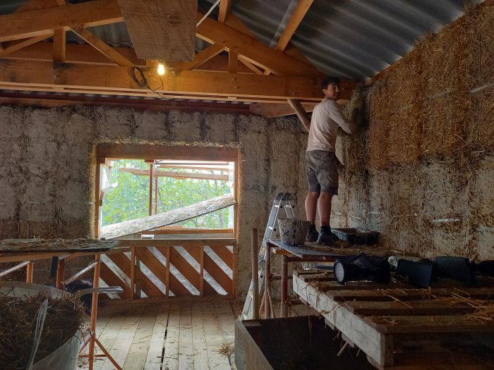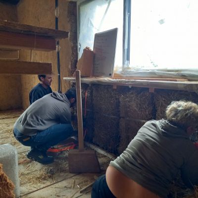 - enduits intérieurs terre-chanvre et chaux-chanvre (1 à 2 semaines fin août/début septembre);