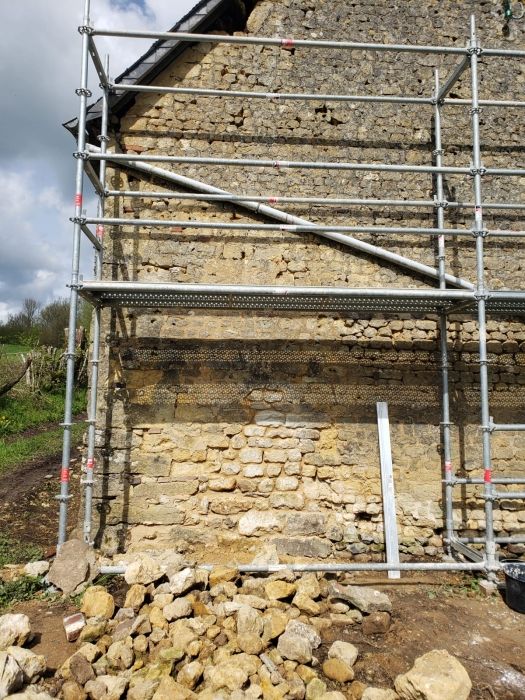 - De la maçonnerie! Piquetage de joints, nettoyage de briques, rejointement a la chaux, réparations de murs par endroits, pose d'échafaudage. (Accompagné ponctuellement par un professionnel).