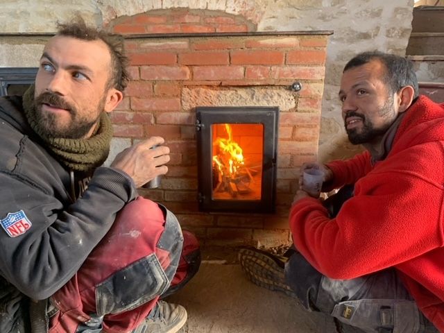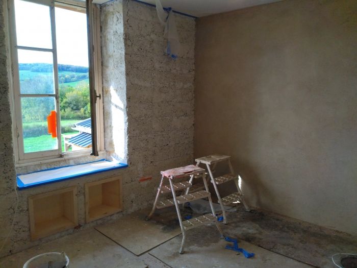 Au jour d’aujourd’hui je n’habite pas encore la maison mais ça ne devrait pas tarder. Le gros œuvre est terminé: j’ai refait plusieurs murs en pierre et la façade en colombage, la charpente, la toiture en petites tuiles avec les lucarnes, des ouvertures en pierre de taille, l’isolation en enduits chaux/liège, l’électricité, le chauffe-eau solaire, les évacuations, la phyto-épuration…