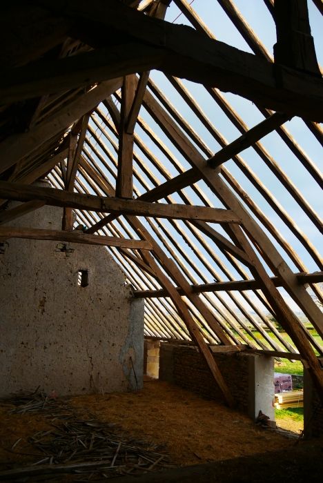 Ayant rénové la toiture de la partie habitation l'an dernier, nous nous attaquons ce printemps à la rénovation de la toiture sur les parties annexes. Ces travaux consiste à déposer l'ancienne toiture (tuiles, lattage...) à mettre en place la nouvelle couverture (pare pluie, contre lattage, lattage et enfin les tuiles).