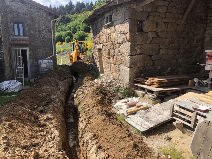 Nous allons également raccorder les bâtiments en eau de source courant mai, il y aura des travaux d'agrandissement du lavoir existant, maçonnerie d'un mur de soutènement et création d'une petite cabane local technique.