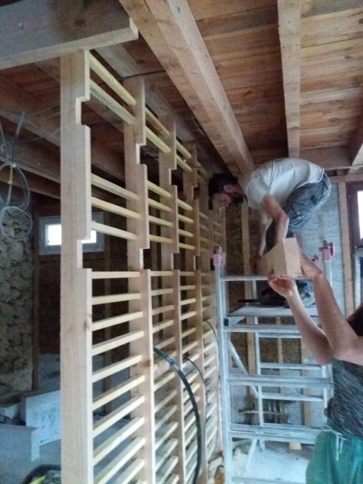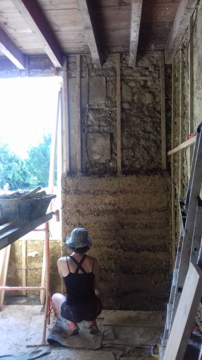 - création cloisons en terre-paille (colombage) , avec finitions en terre ou en chaux