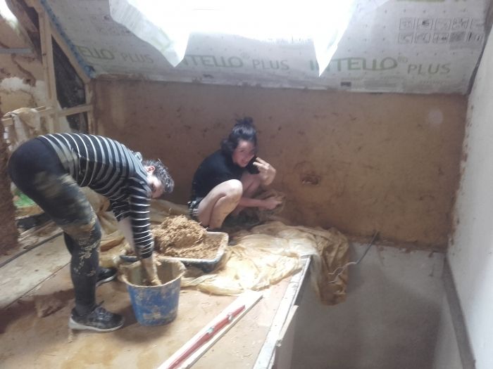 Nous privilégions au maximum les matériaux bas carbone et locaux (paille de mon père agriculteur, terre et sable de la carrière à 5km, bois des scieries lotoises, chaux de st astier) avec cependant les compromis que la rénovation exige.