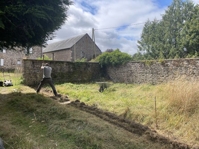 Nous procédons à la rénovation du corps de ferme dans une démarche d'éco-rénovation et de réemplois au maximum des éléments sur place. Nous travaillons autant sur l'intérieur que sur l'extérieur, potager, poulailler, toilettes sèches...