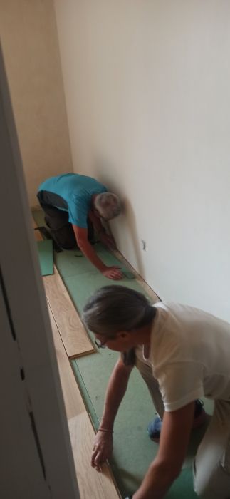 - Rénovation de deux petites pièces : Peinture ou lait de chaux pour les murs, rénovation des parquets,