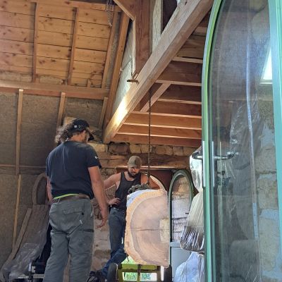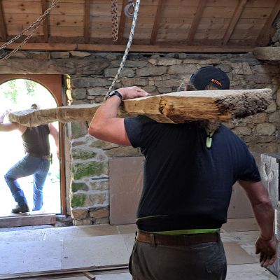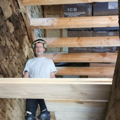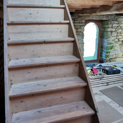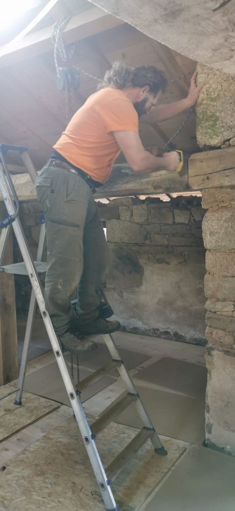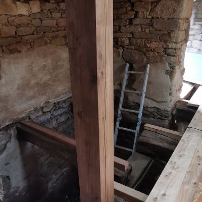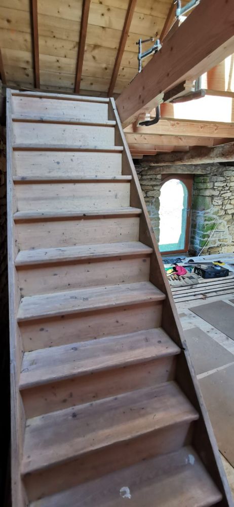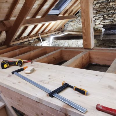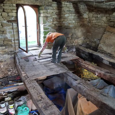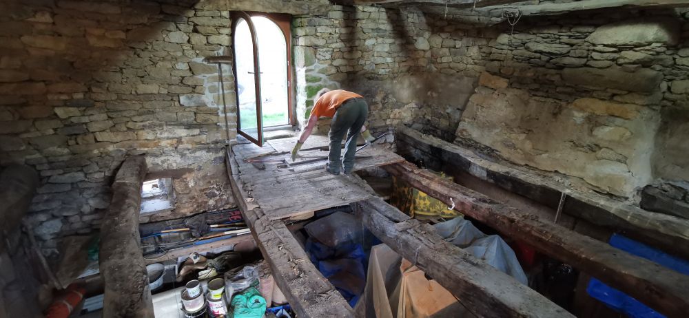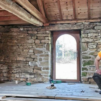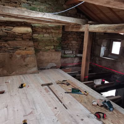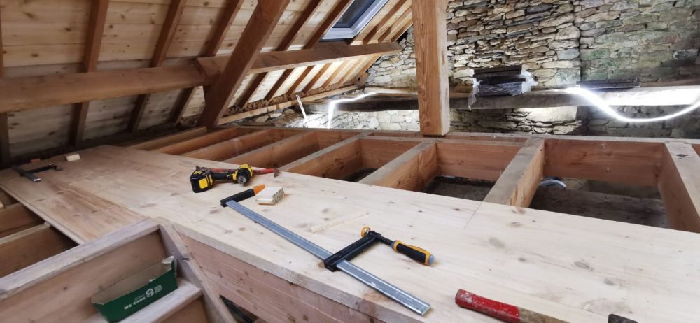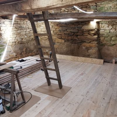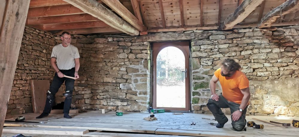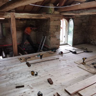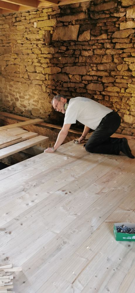 Nous avons commencé la dépose et repose d'un nouveau plancher massif en épicéa de 35mm.