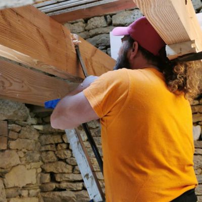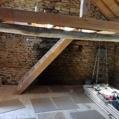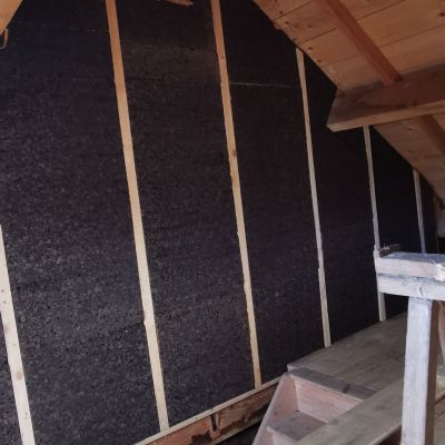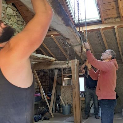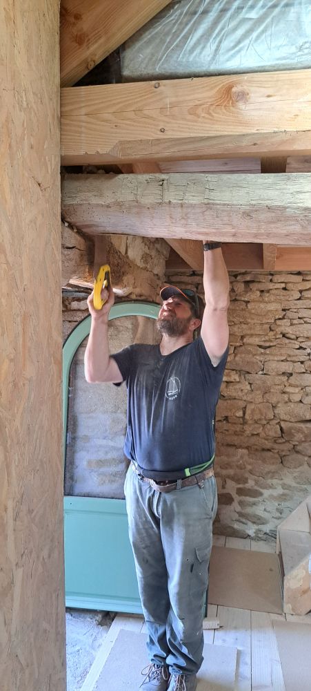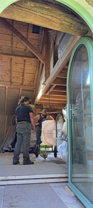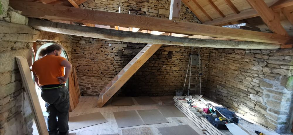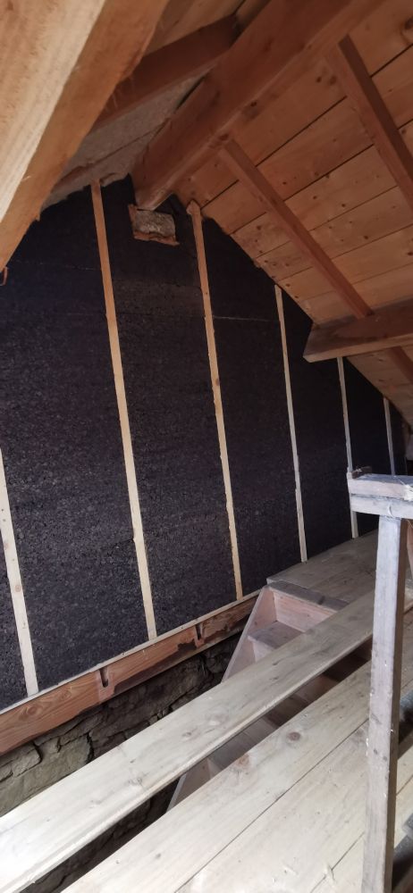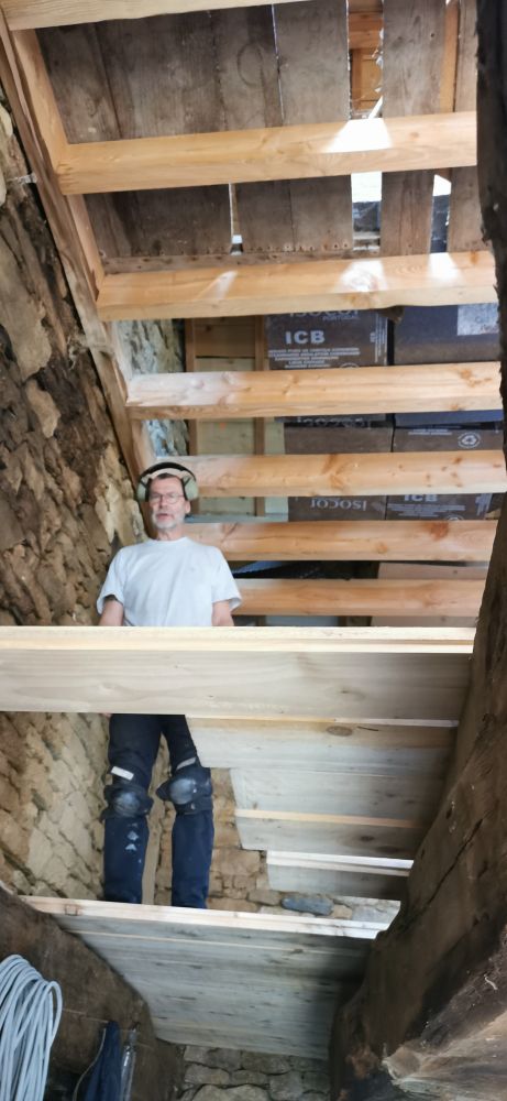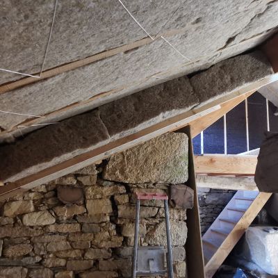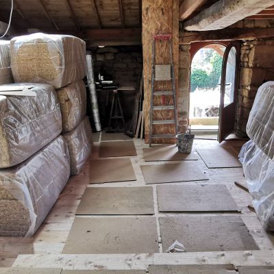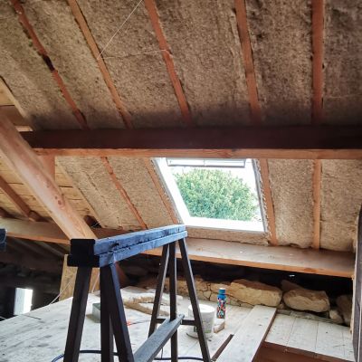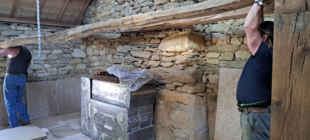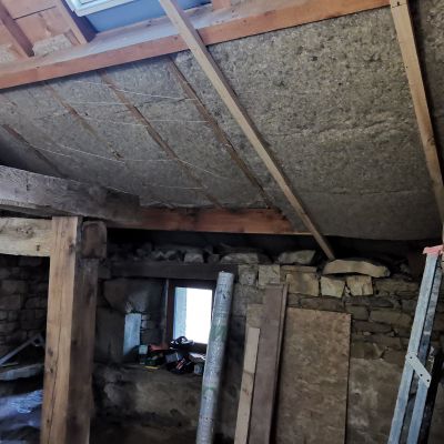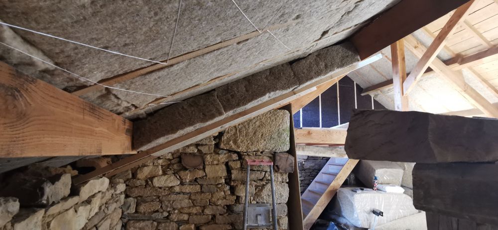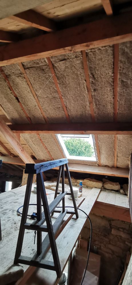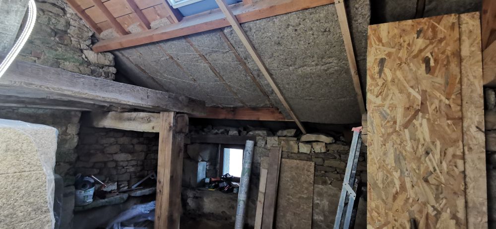 Puis nous commencerons l'isolation en laine de chanvre, le cloisonnage et les enduits chaux chanvre.