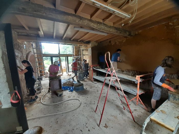 Cette session estivale de chantier sera consacré à l'isolation thermique (plus exactement la correction thermique) en Terre/Chanvre des murs intérieurs de l'enceinte du bâtiment et de corps d'enduit Terre/Paille sur les murs de refends.
