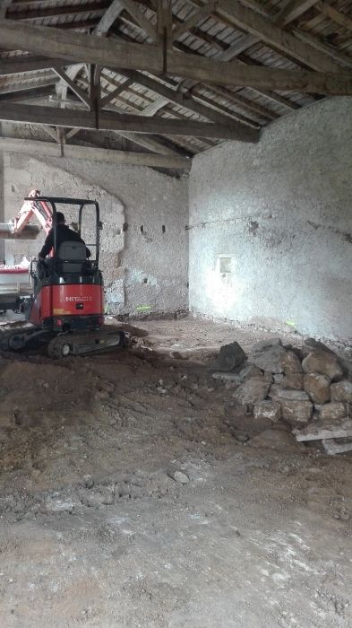 Fin février mi mars 2019: préparation pour dalle Chaux dans la grange avec passage des réseaux